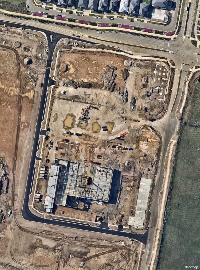 Since the issue of the permit in October 2024, development of the project has progressed significantly. Construction of the main supermarket building, as shown in the sketches below, childcare centre and commercial building are all well underway.